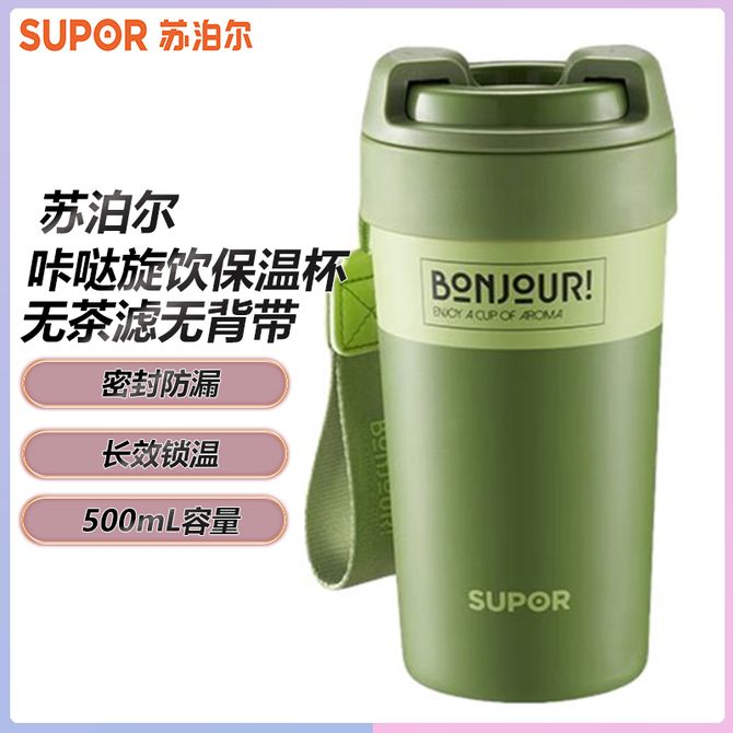 苏泊尔(SUPOR) 咔哒旋饮保温杯 500ml无茶滤无背带 大容量吸管水杯子咖啡杯 KCV50AB10旷野绿 无茶滤无背带,旋转开盖饮水,抗菌陶瓷覆层,详情共用 兑换价格 5700 里程 会员卡别 终身白金卡 白金卡 金卡 银卡 普通卡 儿童卡 服务 由 众生缘(江苏)互联网科技有限公司 发货并提供售后 颜色: 绿色 购买数量: 件 库存件 配送地址: 立即购买 加入购物车 成功添加到购物车 关闭 购物车共有 种商品 总金额为: 组合销售 产品介绍 产品规格 售后服务 产品咨询 发现好货 爱奇屋aichiw思悦保温杯AI-D97 1500 里程 希乐(cille) 领先保温杯XB-22172女生316水杯儿童上学专用大容量杯子冬季男款学生水壶500ml 2400 里程 爱奇屋 保温杯随行口袋杯 高颜值清新小巧水杯子280ml AI-D158 1100 里程 德铂(Debo) 480ml托马斯弹跳盖304不锈钢保温杯DEP-719 1500 里程 德铂Debo保温杯304不锈钢内胆双层茶杯白色DEP-719 1400 里程