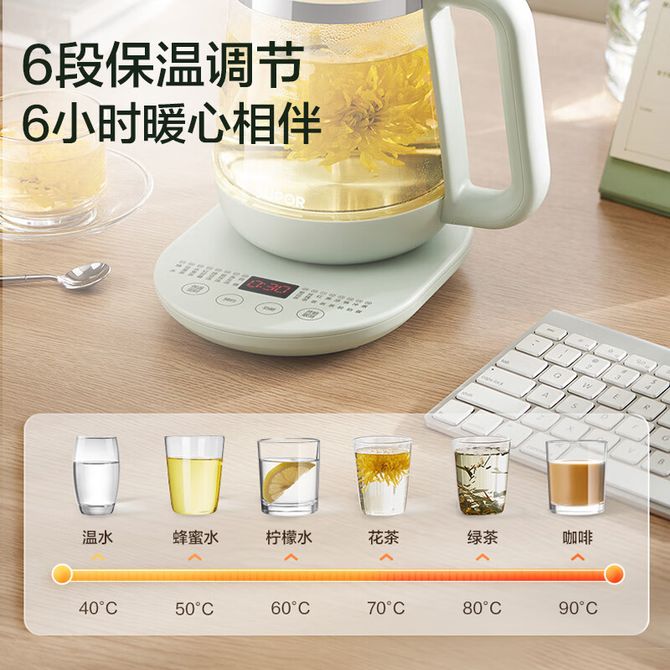 组合销售 产品介绍 产品规格 售后服务 产品咨询 发现好货 九阳/Joyoung 养生壶1.5L茶具电茶壶煮茶壶花茶壶玻璃煮茶器煎药壶中药锅药膳电水壶烧水壶 3900 里程 九阳/Joyoung 养生壶迷你玻璃花茶壶煮茶器 12大功能11档温度 电水壶热水壶烧水壶 1.5L DGD1506BQ 3900 里程 美的/Midea 养生壶 1.5L家用多功能小型全自动办公室烧水壶加厚玻璃煮茶热水壶 MK-YS15P201 4200 里程 美的/Midea 养生壶 1.5L家用养生壶全自动玻璃烧水壶24h预约烧水壶12小时防干烧保护智能恒温 MK-YS15P202 3700 里程 美的/Midea 养生壶 1.5L全自动电热水壶 24h预约12小时智能恒温 14大功能11档控温 花茶壶煮茶器MK-Y12Q 3500 里程