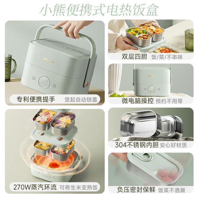 小熊/Bear 电热饭盒加热饭盒 双层不锈钢可插电蒸煮保温饭盒办公室上班族便携带热饭神器学生便当盒 双层四胆 304不锈钢内胆 微电脑操控 270W蒸汽环流 兑换价格 7000 里程 会员卡别 终身白金卡 白金卡 金卡 银卡 普通卡 儿童卡 服务 由 北京致诚博雅贸易有限公司 发货并提供售后 颜色: 绿色 购买数量: 件 库存件 配送地址: 立即购买 加入购物车 成功添加到购物车 关闭 购物车共有 种商品 总金额为:
