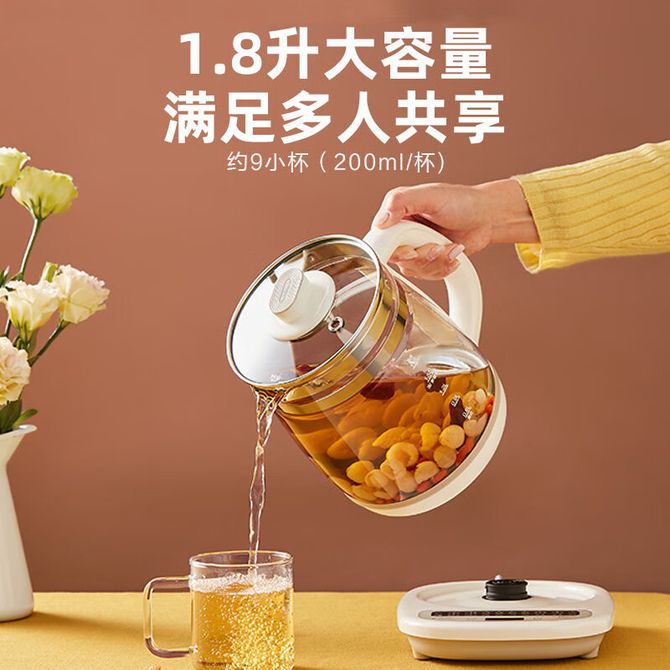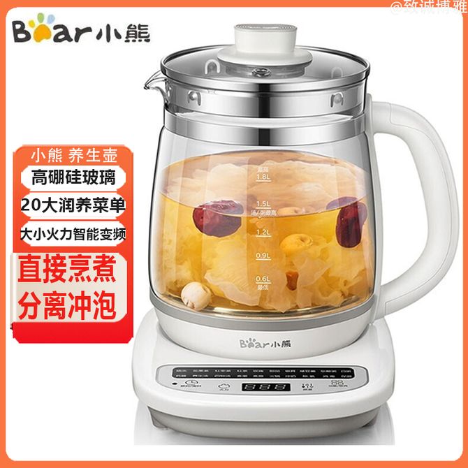小熊/Bear 养生壶全玻璃1.8升大容量智能煮茶器花茶壶 家用办公室多功能煮茶壶烧水壶 带滤网 20大润养菜单 大小火力智能变频 高硼硅玻璃 24h智能预约 直接烹煮/分离冲泡 兑换价格 5700 里程 会员卡别 终身白金卡 白金卡 金卡 银卡 普通卡 儿童卡 服务 由 北京致诚博雅贸易有限公司 发货并提供售后 颜色: 其他 购买数量: 件 库存件 配送地址: 立即购买 加入购物车 成功添加到购物车 关闭 购物车共有 种商品 总金额为: