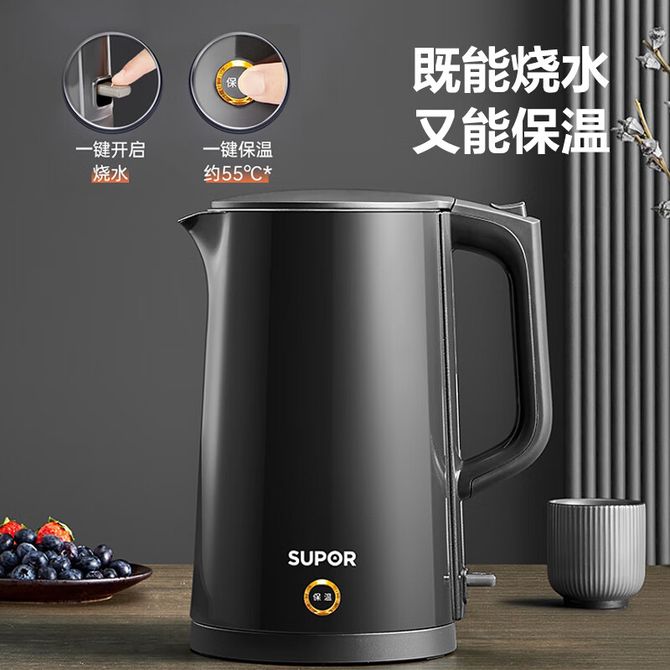 苏泊尔(SUPOR) ZMD安心系列 1.7L大容量 电水壶SW-17S15A PTC机械保温 一键保温一整天 双层无缝内胆 兑换价格 6100 里程 会员卡别 终身白金卡 白金卡 金卡 银卡 普通卡 儿童卡 服务 由 苏京优质生活 发货并提供售后 颜色: 黑色 购买数量: 件 库存件 配送地址: 立即购买 加入购物车 成功添加到购物车 关闭 购物车共有 种商品 总金额为: 组合销售 产品介绍 产品规格 售后服务 产品咨询 发现好货 苏泊尔(SUPOR)电水壶 1.7L 不锈钢/YL SW-17S13A 5700 里程 志高/Chigo 电水壶烧水壶1.8L大容量电热水壶双层防烫自动断电家用烧水开水壶不锈钢 电水壶 DC-A18F 1900 里程 美的/Midea 电热水壶家用大容量烧水壶热水壶双层防烫电水壶304不锈钢内胆自动断电分离式拔盖 MK-SH15X1-102 3000 里程 小熊/Bear 电水壶家用烧水壶 不锈钢自动断电恒温热水壶保温一体电热水壶1.5L容量 3500 里程 小熊/Bear 烧水壶电水壶热水壶电热水壶开水壶304不锈钢内胆双层防烫1.5L大容量ZDH-Q15U8 3000 里程