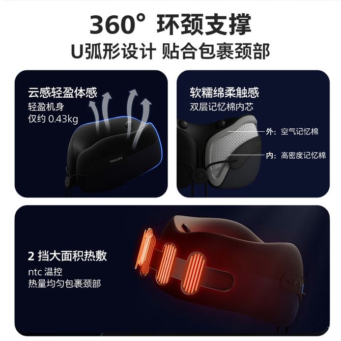 飞利浦/Philips 颈椎按摩器 U型颈部按摩仪午休按摩枕脖子支撑热敷振动按摩 PPM3106N 生日礼物礼品送朋友 兑换价格 10900 里程 会员卡别 终身白金卡 白金卡 金卡 银卡 普通卡 儿童卡 服务 由 大王电器专卖店 发货并提供售后 颜色: 黑色 购买数量: 件 库存件 配送地址: 立即购买 加入购物车 成功添加到购物车 关闭 购物车共有 种商品 总金额为: