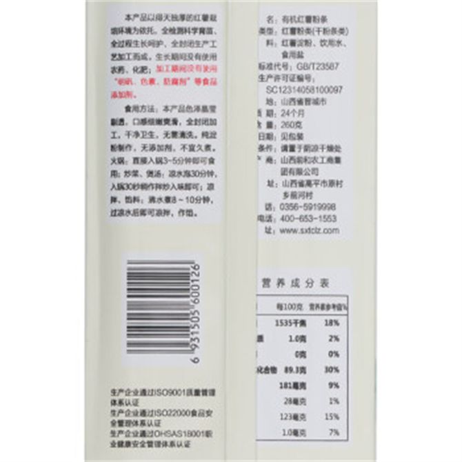 有机红薯粉 无添加