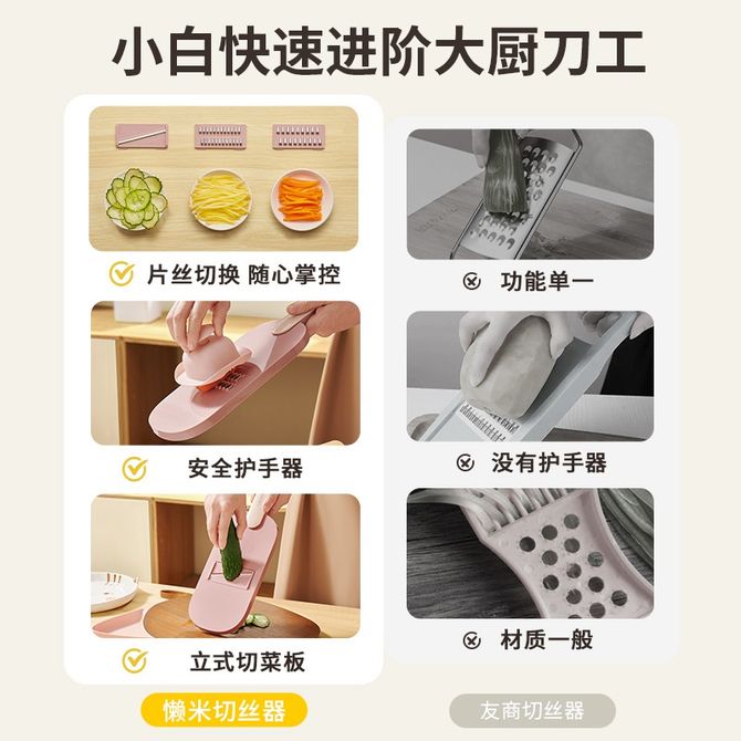 懒米 多用切丝器粉色 家用厨房土豆丝黄瓜丝胡萝卜丝切丝器