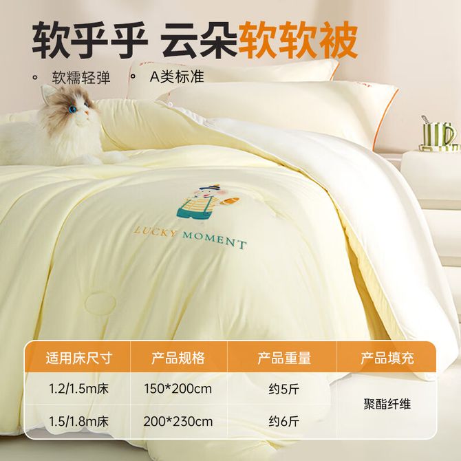 组合销售 产品介绍 产品规格 售后服务 产品咨询 发现好货 洁丽雅(Grace)全棉夏凉被棉花被双人空调被 纯棉被子可机洗 薄被芯 洛洛繁花 150*200cm(Grace) 6100-7400 里程 洁帛 A类零压力抗菌防螨纤维春秋四季被 3500-3900 里程 北极绒(Bejirog) 泡泡纱大豆纤维四季被 细腻温润吸湿透气不闷不燥 BJRB314 8000 里程 洁丽雅/Grace 10%大豆纤维 纤维被子 空调夏凉被 (多规格可选)CP2262柠檬青 2500-3400 里程 京东京造 暖暖大白被 100%原生纤维A类磨毛厚实保暖被子冬季被芯 4斤-6.8斤 多尺寸可选 5000-7000 里程