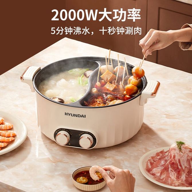 HYUNDAI 多功能电煮锅5L鸳鸯锅 多用途电火锅煲汤锅 QC-HG1325A 【鸳鸯锅胆、5L大容量,双旋钮独立控温,两档火力随心控】 兑换价格 6500 里程 会员卡别 终身白金卡 白金卡 金卡 银卡 普通卡 儿童卡 服务 由 瑶晨生活专营店 发货并提供售后 颜色: 白色 购买数量: 件 库存件 配送地址: 立即购买 加入购物车 成功添加到购物车 关闭 购物车共有 种商品 总金额为:
