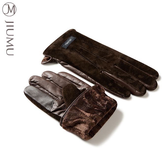 玖慕/JIUMU 男士真皮手套羊皮可触屏秋冬新款保暖加绒户外骑行开车GLZ047
