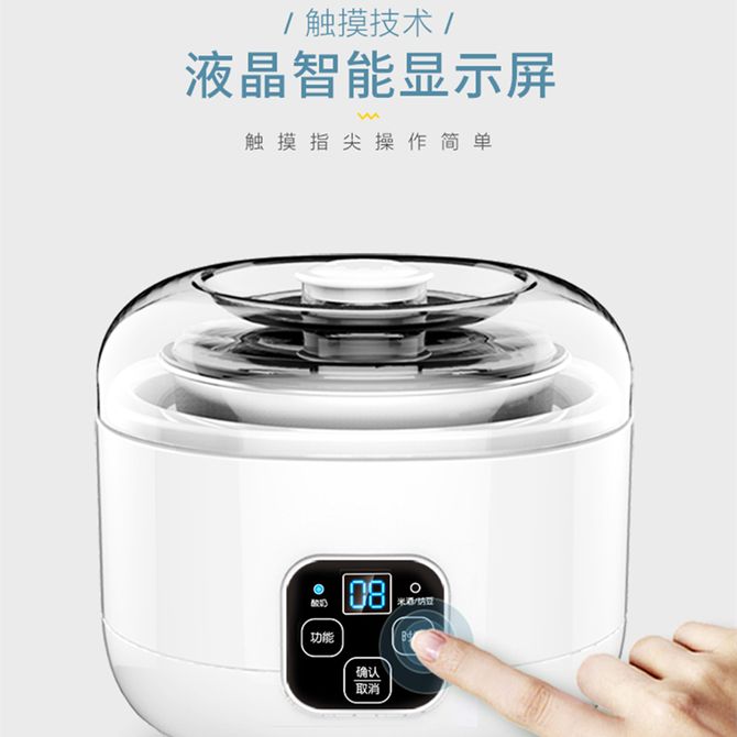 1L容量;微电脑式控制,精确控温,控时,食品级PP材质,LED显示屏,分段控温,可满足不同食物的温度需求,铃声提示,安全方便,可以做酸奶,米酒,纳豆