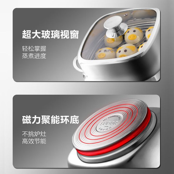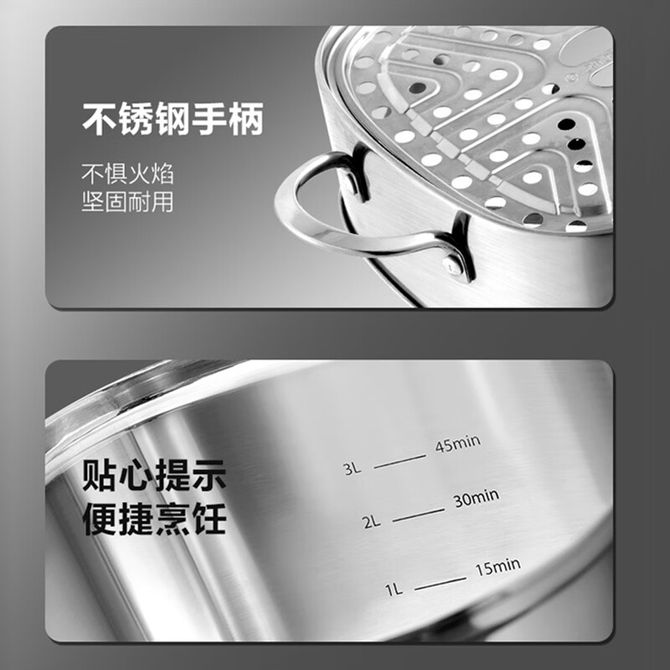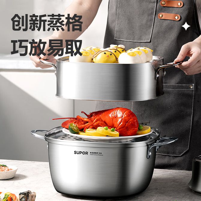 组合销售 产品介绍 产品规格 售后服务 产品咨询 发现好货 苏泊尔(SUPOR) 蒸锅不锈钢28cm复底双层SZ28B5蒸鱼蒸馒头蒸馍大蒸锅蒸笼 8700 里程 德铂(Debo)汤锅不锈钢单层蒸锅蒸笼电磁炉两用锅艾琳诺26cm DEP-DS146 2100 里程 拜格(Bayco) 蒸锅三层家用蒸馒头煲汤加厚汤锅BG1548【28cm】 3000 里程 炊大皇(COOKER KING) 304不锈钢三层蒸锅家用复合底汤锅蒸馒头包子可视可立高拱盖30cm 6100 里程 德铂(Debo) 科洛姆双层蒸锅不锈钢汤锅20cm不挑炉灶DEP-913 2600 里程