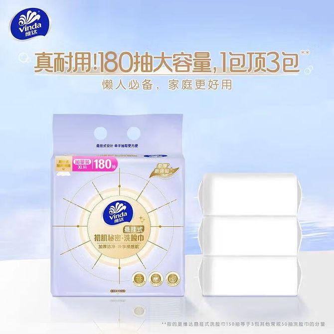 维达 洗脸巾180抽擦脸巾悬挂式一次性抽取式干湿用抽取式大包加厚家用实惠装 下单规格:加量180抽,新旧包装随机发货 兑换价格 1300 里程 会员卡别 终身白金卡 白金卡 金卡 银卡 普通卡 儿童卡 服务 由 岸嘉生活馆 发货并提供售后 包装数量: 1提 购买数量: 件 库存件 配送地址: 立即购买 加入购物车 成功添加到购物车 关闭 购物车共有 种商品 总金额为: 组合销售 产品介绍 产品规格 售后服务 产品咨询 发现好货 维达卷纸 卫生纸实惠装厕纸家用厕所纸巾手纸整箱批有芯大卷家庭装 1200-2300 里程 维达 Vinda 卷纸 140g/卷*10卷 蓝色经典3层卫生纸 1300 里程 心相印抽纸 茶语丝享系列 量贩家庭装 3层*100抽*4包(茶香 压花) 1100 里程 心相印 经典系列 二层面巾纸 180抽*6包*1提 1100 里程 维达Vinda 超韧系列抽纸(3层*130抽*6包) 原生木浆卫生餐巾纸婴儿面巾纸 6包优惠装 1100 里程