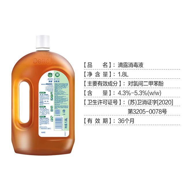 滴露/Dettol 消毒液1.8L*1瓶 家用衣物除菌液衣物消毒液家居室内环境地板消毒衣物除菌剂 如有购买售后咨询可电话联系客服18810326768 兑换价格 3700 里程 会员卡别 终身白金卡 白金卡 金卡 银卡 普通卡 儿童卡 服务 由 旭启清洁纸品专营店 发货并提供售后 清洁剂容量: 其他容量 净含量: 其他容量 购买数量: 件 库存件 配送地址: 立即购买 加入购物车 成功添加到购物车 关闭 购物车共有 种商品 总金额为: 组合销售 产品介绍 产品规格 售后服务 产品咨询 发现好货 超能 西柚祛腥洗洁精1kg*2瓶 家用果蔬清洗剂 1200 里程 滴露/Dettol 滋润倍护洗手液500g*2两瓶装 1900 里程 滴露/Dettol 泡沫抑菌洗手液青柠香型250ml 1300 里程 威露士 洗手液 倍护滋润250ml *2瓶 深入洁净有效抑菌温和滋润清洁双手 1100 里程 超能 洗洁精(白桃苏打)1kg*2瓶 1100 里程