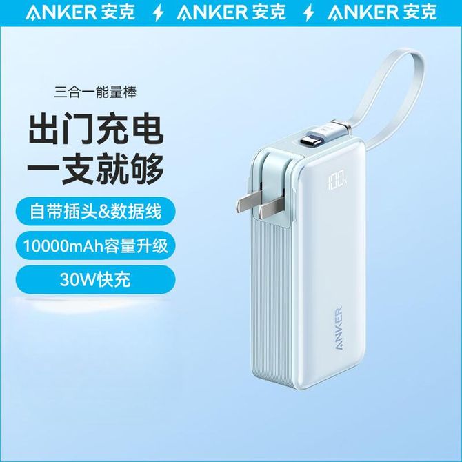 安克/Anker 三合一能量棒 充电宝自带数据线充电器10000毫安大容量30W快充插头可上飞机适用苹果华为 蓝色 A1637 自带快充线 30W充电器 小巧不占地 可上飞机 兑换价格 13000 里程 会员卡别 终身白金卡 白金卡 金卡 银卡 普通卡 儿童卡 服务 由 拓途天下数码专营店 发货并提供售后 电池容量: 8001mAh-10000mAh 颜色: 蓝色 购买数量: 件 库存件 配送地址: 立即购买 加入购物车 成功添加到购物车 关闭 购物车共有 种商品 总金额为: