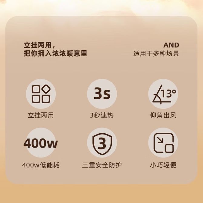 小熊/Bear 取暖器家用电暖器暖风机电暖气家用 办公室台式桌面小型暖风机取暖器 3秒速热可挂立,仰角出风小巧便携 兑换价格 3900 里程 会员卡别 终身白金卡 白金卡 金卡 银卡 普通卡 儿童卡 服务 由 广西自贸区京通桂达科技发展有限公司 发货并提供售后 颜色: 其他 购买数量: 件 库存件 配送地址: 立即购买 加入购物车 成功添加到购物车 关闭 购物车共有 种商品 总金额为: 组合销售 产品介绍 产品规格 售后服务 产品咨询 发现好货 先锋 塔式暖风机 顶部轻触式按键操控即开即热大热量取暖智能恒温取暖器 8300 里程 彩虹 全线路安全保护调温电热毯 单人款 1.5*0.7米 XL1203 4500 里程 美的(Midea)热水器 F05-15A1(S) 厨宝快热小厨宝5升厨房热水宝储水迷你安全家用蓝钻内胆安全厨宝洗速热上出水非下出水 5升上出水1650W速热 17800 里程 彩虹(RAINBOW)电热毯全线路安全保护双控双温电热毯(1.8*1.5m)定时电褥子电暖毯一键排潮高温自动断电1358花色随机 8700 里程 康佳/Konka 取暖器家用石墨烯暖风机立式电暖气浴室电暖风节能热风机速热暖风扇摇头电暖器烤火炉 5700 里程