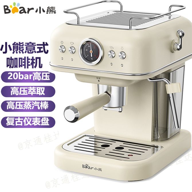 小熊/Bear 咖啡机 家用意式泵压式20Bar高压喷射可打奶泡1.2升 拿铁咖啡 20bar高压,高压蒸汽棒,复古仪表盘 兑换价格 26100 里程 会员卡别 终身白金卡 白金卡 金卡 银卡 普通卡 儿童卡 服务 由 广西自贸区京通桂达科技发展有限公司 发货并提供售后 颜色: 其他 购买数量: 件 库存件 配送地址: 立即购买 加入购物车 成功添加到购物车 关闭 购物车共有 种商品 总金额为: 组合销售 产品介绍 产品规格 售后服务 产品咨询 发现好货 柏翠/Petrus 小白醒醒 浓缩意式咖啡机 1.2L可拆卸水箱 稳压萃取 家用小型半自动蒸汽打奶泡 26100 里程 磨客 咖啡机家用意式小型半自动花式浓缩咖啡蒸汽打奶泡一体泵压式高压萃取多功能奶泡机MK-382米白色 11500 里程 东菱/Donlim 触控咖啡机研磨一体机 智能恒温美式全自动滴滤式咖啡壶DL-KF1061 17300 里程 小熊/Bear 咖啡机美式 家用滴漏式全自动迷你小型咖啡粉泡茶两用办公室煮茶机KFJA06K1 4400 里程 东菱Donlim 触控研磨一体咖啡机 智能恒温美式全自动滴滤式咖啡壶DL-KF1061 19200 里程