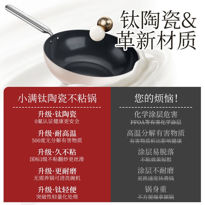 德世朗(DESLON) 小满系列钛陶瓷不粘炒锅30cm 家用无油烟陶瓷不粘锅易清洁不粘锅炒锅 耐高温耐磨 不粘锅 易清洁 不挑炉灶 兑换价格 7400 里程 会员卡别 终身白金卡 白金卡 金卡 银卡 普通卡 儿童卡 服务 由 广西桂雅文化传媒有限公司 发货并提供售后 颜色: 其他 购买数量: 件 库存件 配送地址: 立即购买 加入购物车 成功添加到购物车 关闭 购物车共有 种商品 总金额为: 组合销售 产品介绍 产品规格 售后服务 产品咨询 发现好货 苏泊尔 炫彩易洁不粘炒锅 NC30F4 8700 里程 九阳(Joyoung)炒锅家用32cm无涂层铸铁炒菜锅可立盖CF32C-CJ232-A 4400 里程 炊大皇/Cookerking 炒锅 30cm+盖子 无涂层聚油爆炒精铁锅炒菜锅电磁炉燃气通用锅具精铁锅 3900 里程 张小泉 32CM匠艺老铁锅多炉可用精铁炒锅锅具厨具C30240100 8300 里程 爱仕达/ASD 新不粘煎炒锅炒锅28cm不粘锅炒菜锅平底煎炒锅WG8328E 4800 里程