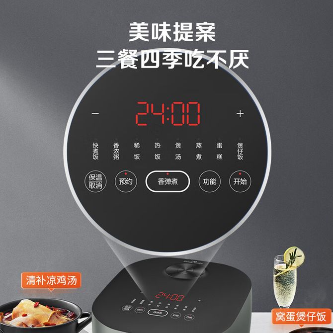 组合销售 产品介绍 产品规格 售后服务 产品咨询 发现好货 苏泊尔(SUPOR) 电饭煲电饭锅4L大容量 不粘内胆4-6个人前置大屏面板24小时预约上蒸下煮多功能家用智能SF40FC0063 7700 里程 美菱/MELNG 电饭煲3L触控式预约定时MF-LC3005 4400 里程 美的(Midea) 电饭煲 家用3L智能预约多功能电饭锅小型1-4人煮饭锅智能 白色 MB-FB30M161 7800 里程 康佳/Konka 迷你电饭煲小电饭锅2L容量智能温控12小时预约煮饭煮粥锅 4800 里程 美的/Midea 电饭煲电饭锅3-4个人家用4L大容量聚能釜金属机身大火力米饭锅【升级焖香阀】RE417 8700 里程