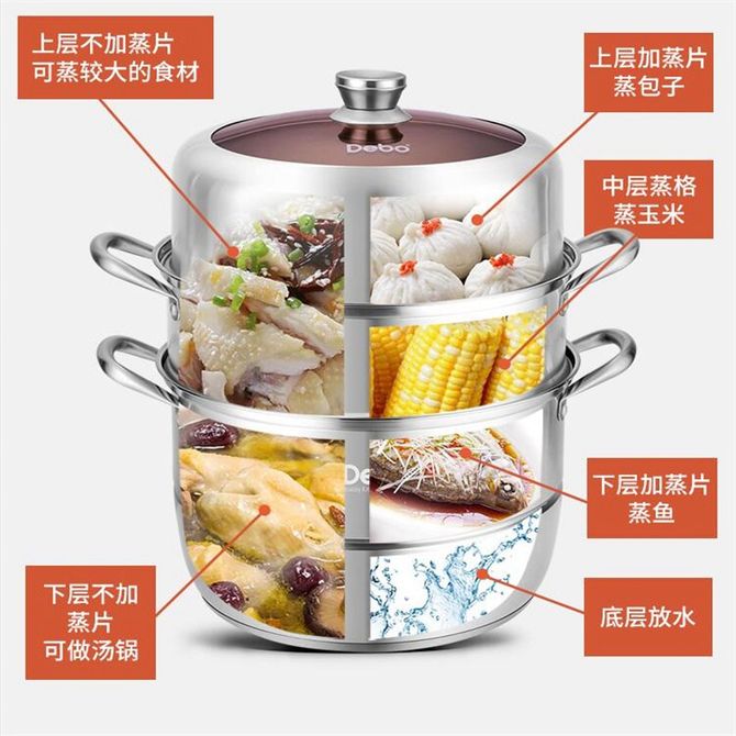 组合销售 产品介绍 产品规格 售后服务 产品咨询 发现好货 苏泊尔(SUPOR) 蒸锅不锈钢28cm复底双层SZ28B5蒸鱼蒸馒头蒸馍大蒸锅蒸笼 8700 里程 德铂(Debo)汤锅不锈钢单层蒸锅蒸笼电磁炉两用锅艾琳诺26cm DEP-DS146 2100 里程 拜格(Bayco) 蒸锅三层家用蒸馒头煲汤加厚汤锅BG1548【28cm】 3000 里程 炊大皇(COOKER KING) 304不锈钢三层蒸锅家用复合底汤锅蒸馒头包子可视可立高拱盖30cm 6100 里程 德铂(Debo) 科洛姆双层蒸锅不锈钢汤锅20cm不挑炉灶DEP-913 2600 里程