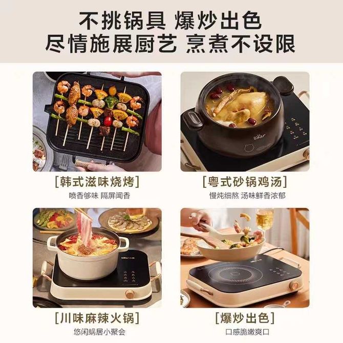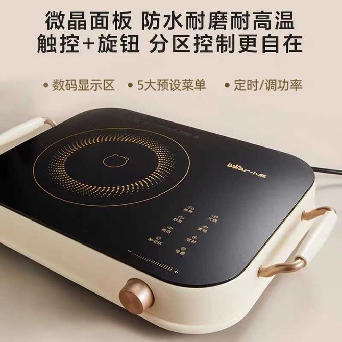 小熊/Bear 电陶炉家用大功率炒菜煮茶烤肉火锅炒锅低辐射爆炒电磁炉电炉灶新款智能灶不挑锅具 3h定时 单环1100W 双环2200W 多段无极调节 兑换价格 8700 里程 会员卡别 终身白金卡 白金卡 金卡 银卡 普通卡 儿童卡 服务 由 广西桂福礼供应链管理有限公司 发货并提供售后 颜色: 米白色 购买数量: 件 库存件 配送地址: 立即购买 加入购物车 成功添加到购物车 关闭 购物车共有 种商品 总金额为: 组合销售 产品介绍 产品规格 售后服务 产品咨询 发现好货 美的/Midea 电磁炉2100W大功率家用触控按键耐用面板八档火力定时功能防水电磁灶火锅炉C21-RT21E01 2100W大功率 6500 里程 美的(Midea) 电磁炉 家用大火力电池炉电磁灶 RT21E0105 7000 里程 美的(Midea)电磁炉商用2200W大功率配锅套装家用电磁灶触控MC-CL22Q1-405J 7800 里程 美的/Midea 电磁炉 家用大功率 4D防水面板 2200W大火力炒菜火锅不粘炒锅一体小型电磁灶 5700 里程 美的(Midea)电磁炉家用2200W大火力火锅炉汉森面板智能定时旋风防堵风机C22-RT22E01 7000 里程