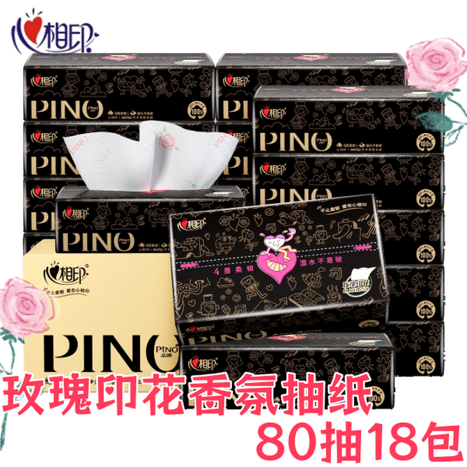 心相印 抽纸纸巾 品诺IP联名款 4层80抽*18包 玫瑰印花香氛纸巾抽纸