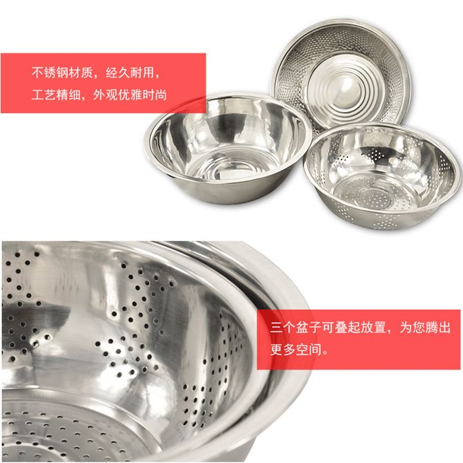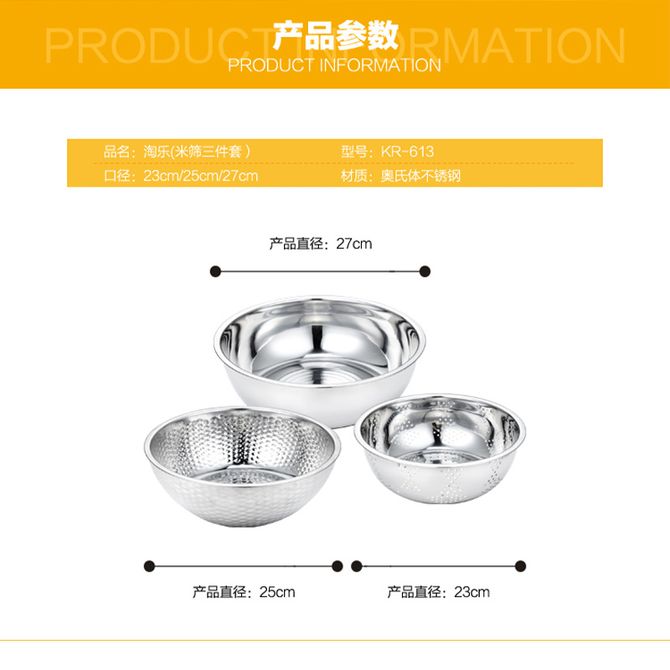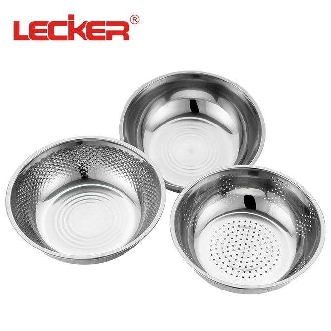lecker 淘乐米筛三件套(23cm+25cm+27cm)洗米筛洗菜盆过滤盆-KR61-3