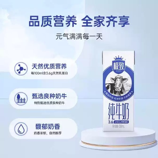 三元(SAN YUAN) 极致全脂纯牛奶250ml*16盒*2提 认证牧场 品质保障 营养健康 兑换价格 4900 里程 会员卡别 终身白金卡 白金卡 金卡 银卡 普通卡 儿童卡 服务 由 致良优选 发货并提供售后 规格: 组合 购买数量: 件 库存件 配送地址: 立即购买 加入购物车 成功添加到购物车 关闭 购物车共有 种商品 总金额为: 组合销售 产品介绍 产品规格 售后服务 产品咨询 发现好货 蒙牛 特仑苏纯牛奶苗条装250ml×12盒 2900 里程 三元 经典小方白全脂纯牛奶250ml*24盒牛奶 整箱 3400 里程 伊利金典纯牛奶250ml*12盒整箱 2200 里程 伊利 金典纯牛奶整箱 250ml*12盒 3.6g乳蛋白 原生高钙 礼盒装 1800 里程 特仑苏 新日期纯牛奶250ml*12盒 3.6g乳蛋白 礼盒装 京东/顺丰发货 2400 里程