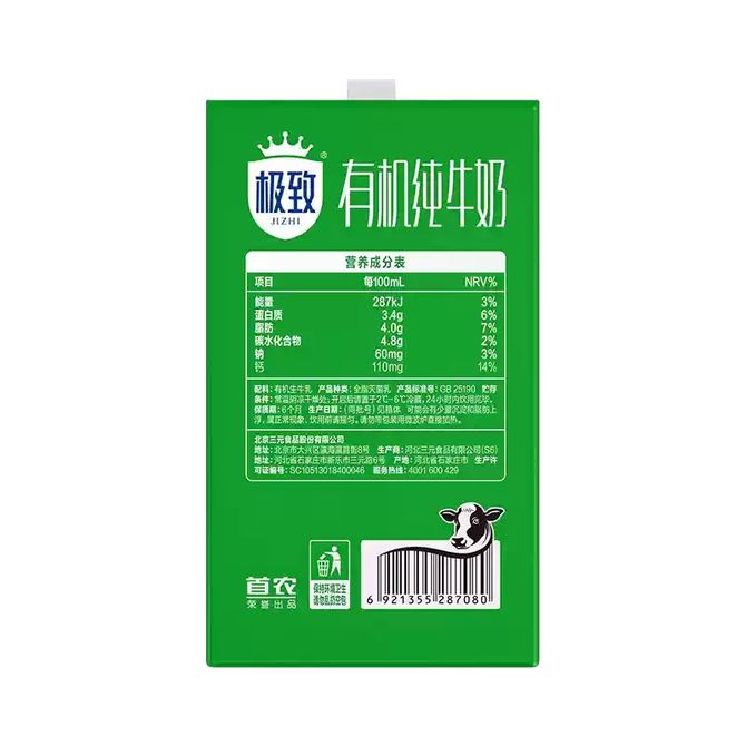 三元(SAN YUAN) 极致有机纯牛奶200ml*10盒*2提 认证牧场 品质保障 营养健康 兑换价格 3700 里程 会员卡别 终身白金卡 白金卡 金卡 银卡 普通卡 儿童卡 服务 由 致良优选 发货并提供售后 规格: 组合 购买数量: 件 库存件 配送地址: 立即购买 加入购物车 成功添加到购物车 关闭 购物车共有 种商品 总金额为: 组合销售 产品介绍 产品规格 售后服务 产品咨询 发现好货 蒙牛 特仑苏纯牛奶苗条装250ml×12盒 2900 里程 三元 经典小方白全脂纯牛奶250ml*24盒牛奶 整箱 3400 里程 伊利金典纯牛奶250ml*12盒整箱 2200 里程 伊利 金典纯牛奶整箱 250ml*12盒 3.6g乳蛋白 原生高钙 礼盒装 1800 里程 特仑苏 新日期纯牛奶250ml*12盒 3.6g乳蛋白 礼盒装 京东/顺丰发货 2400 里程