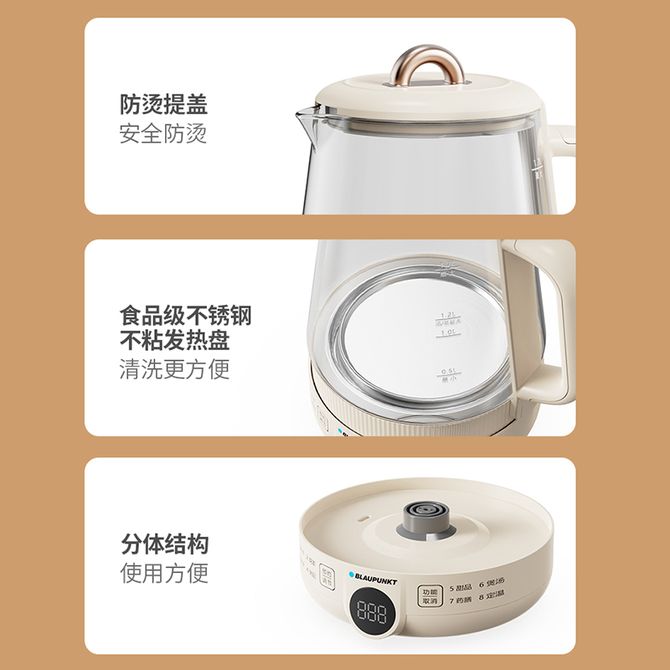 BLAUPUNKT 养生壶1.7L容量煮茶器养生壶多功能煮茶壶办公室花茶烧水壶煮开水壶花茶壶煎药壶 高硼硅玻璃 8大功能 耐高温 精准数显 触摸按键 食品级304 兑换价格 8300 里程 会员卡别 终身白金卡 白金卡 金卡 银卡 普通卡 儿童卡 服务 由 广西自贸区京通桂达科技发展有限公司 发货并提供售后 颜色: 其他 购买数量: 件 库存件 配送地址: 立即购买 加入购物车 成功添加到购物车 关闭 购物车共有 种商品 总金额为: