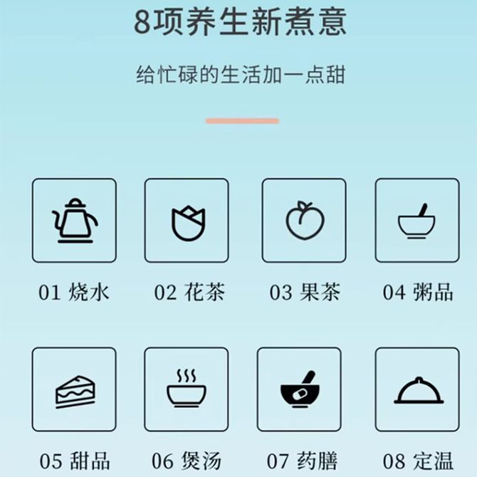 组合销售 产品介绍 产品规格 售后服务 产品咨询 发现好货 九阳/Joyoung 养生壶1.5L茶具电茶壶煮茶壶花茶壶玻璃煮茶器煎药壶中药锅药膳电水壶烧水壶 3900 里程 九阳/Joyoung 养生壶迷你玻璃花茶壶煮茶器 12大功能11档温度 电水壶热水壶烧水壶 1.5L DGD1506BQ 3900 里程 美的/Midea 养生壶 1.5L家用多功能小型全自动办公室烧水壶加厚玻璃煮茶热水壶 MK-YS15P201 4200 里程 美的/Midea 养生壶 1.5L家用养生壶全自动玻璃烧水壶24h预约烧水壶12小时防干烧保护智能恒温 MK-YS15P202 3700 里程 美的/Midea 养生壶 1.5L全自动电热水壶 24h预约12小时智能恒温 14大功能11档控温 花茶壶煮茶器MK-Y12Q 3500 里程