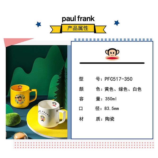 大嘴猴/PaulFrank 马克杯350ml 大容量陶瓷男女生水杯家用茶杯办公室手柄杯子 绿色 该款为绿色款350ml,详情共用; 兑换价格 1300 里程 会员卡别 终身白金卡 白金卡 金卡 银卡 普通卡 儿童卡 服务 由 众生缘(江苏)互联网科技有限公司 发货并提供售后 颜色: 其他 购买数量: 件 库存件 配送地址: 立即购买 加入购物车 成功添加到购物车 关闭 购物车共有 种商品 总金额为: