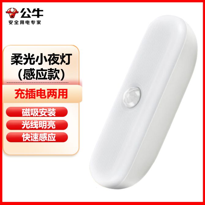 公牛(BULL) 柔光小夜灯床头小灯衣柜条形起夜灯感应款快速感应磁吸安装-公牛(BULL)柔光小夜灯(感应款) (此款为色温6000K 自然光)快速感应 光线明亮 充插两用 磁吸安装 持久续航 兑换价格 1400 里程 会员卡别 终身白金卡 白金卡 金卡 银卡 普通卡 儿童卡 服务 由 北京致诚博雅贸易有限公司 发货并提供售后 颜色: 其他 购买数量: 件 库存件 配送地址: 立即购买 加入购物车 成功添加到购物车 关闭 购物车共有 种商品 总金额为: 组合销售 产品介绍 产品规格 售后服务 产品咨询 发现好货 雅格yage 台灯 充插电两用 可触摸调光三档 LED灯宿舍阅读小夜灯 折叠款 180度自由调节 1800 里程 美的(Midea)酷毙灯 学生学习阅读灯吸附式小夜灯磁吸灯床头灯橱柜灯宿舍神器usb充电led台灯 2100 里程 美的(Midea)护眼台灯 国AA级LED插电阅读台灯 床头灯 MT-15F1 4800 里程 美的/Midea 台灯 35cm发光面 led护眼超亮酷毙灯充电式台灯大学生宿舍磁铁贴粘贴背胶寝室 明舍H2 3100 里程 飞利浦/Philips 品志 LED充电护眼台灯 8700 里程