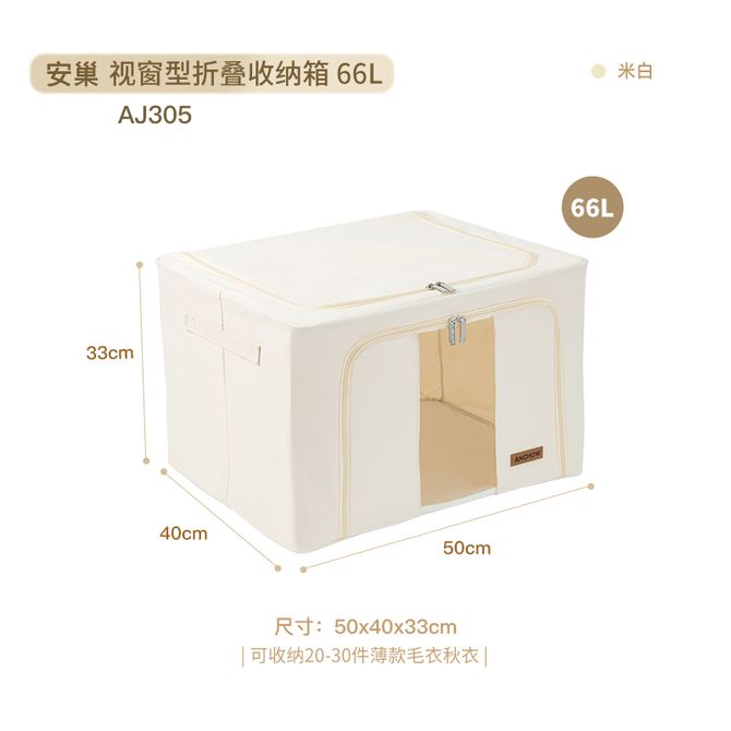 安巢家居/ANCHOW 视窗型66L折叠收纳箱 50x40x33cm AJ305 采用柔美尼材质,添加防水层,防泼水,干燥透气、防霉防蛀,内有4根加粗喷塑钢丝固定四周,喷塑钢丝不易生锈。收纳箱可装衣物、被子、四件套等物品,整洁整齐,透明可视设计,一目了然,存放灵活。织带手柄,省力搬运,拆装方便,可折叠收纳,节约空间。 兑换价格 2700 里程 会员卡别 终身白金卡 白金卡 金卡 银卡 普通卡 儿童卡 服务 由 斐歆时尚专卖店 发货并提供售后 颜色: 米白色 购买数量: 件 库存件 配送地址: 立即购买 加入购物车 成功添加到购物车 关闭 购物车共有 种商品 总金额为: