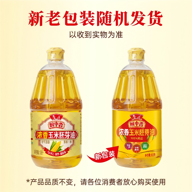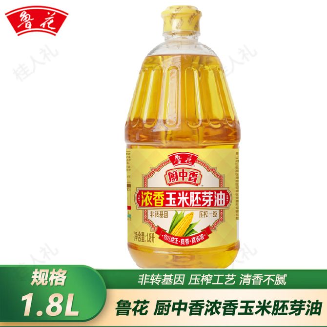 鲁花 厨中香浓香玉米胚芽油1.8L 小瓶 物理压榨滴滴清香 健康烹饪 食用油