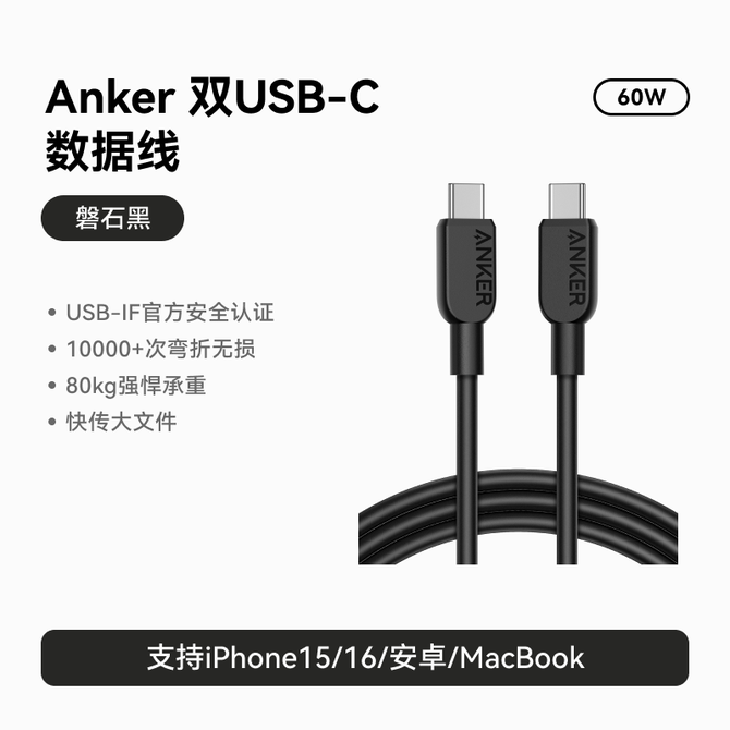安克 60Wtype-c苹果数据线双头笔记本苹果华为小米通用 双Type-C|安心充|iPhone15/16全系华为小米通用 兑换价格 1300 里程 会员卡别 终身白金卡 白金卡 金卡 银卡 普通卡 儿童卡 服务 由 单象数码专营店 发货并提供售后 颜色: 黑色 购买数量: 件 库存件 配送地址: 立即购买 加入购物车 成功添加到购物车 关闭 购物车共有 种商品 总金额为: 组合销售 产品介绍 产品规格 售后服务 产品咨询 发现好货 雷摄 66W超级快充线 5A数据线一拖三充电线 1.2米苹果/Type-c/安卓三合一快充线华为 车载手机快充电源线 LS-366 1300 里程 倍思(Baseus) 倍思(Baseus) 一拖三数据线3.5A快充 苹果/Type-c/安卓手机一拖三充电线1米 适用苹果华为小米三星 1100 里程 品胜(PISEN) 数据线三合一 苹果Type-c安卓手机充电线1.2米快充 1600 里程 品胜 牛仔布 苹果数据线 牛仔布铝合金数据充电线 2100 里程 品胜(PISEN) 三合一数据线多头usb多功能数据车载充电线 3.5A大功率一拖三苹果/安卓/Type-C 适用iphone安卓苹果华为 1400 里程