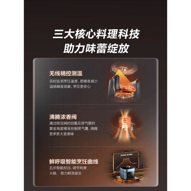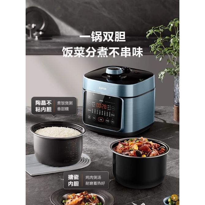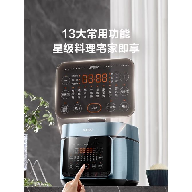 组合销售 产品介绍 产品规格 售后服务 产品咨询 发现好货 苏泊尔(SUPOR)电压力锅 6升大容量 智能触控 球釜双胆 开盖收汁 一键排压 SY-60YC8001Q 高压锅 16900 里程 美的/Midea 电压力锅家用5L大容量多功能高压锅双胆一键收汁智能预约不粘电高压锅电饭锅煮粥煲汤锅 一锅双胆【一键收汁入味】 YL50M1-702 10600 里程 苏泊尔(SUPOR) 5L电压力锅家用电高压锅双胆高压电饭锅煮饭智能预约 SY-50YC8186 11300 里程 美的/Midea 电压力锅 【一锅双胆】5L全自动家用智能预约 上蒸下煮 不粘双胆煲汤炖肉 YL50Q3-451 10900 里程 美的/Midea 电压力锅 高压锅家用电压力煲智能预约电饭煲大容量多功能定时预约电饭煲3-8人单胆旋钮款4L MY-E4809 8700 里程