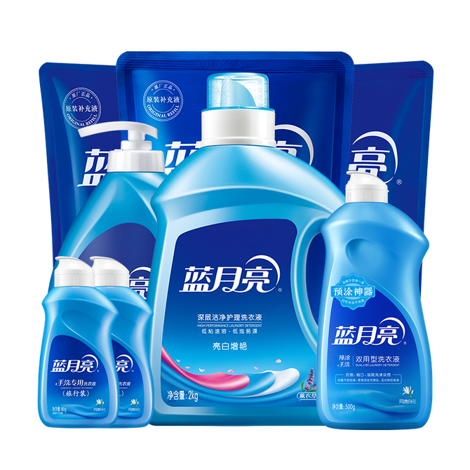 蓝月亮 洗衣液2kg瓶+补充装500gx2袋+手洗1kg瓶+预涂500g瓶 正品包邮 多种体验 合计发9斤+80g组合 蓝月亮品牌方仓库直接发货,正品无忧,部分商品包装更新,新旧包装随机发货,还请多多见谅。 兑换价格 7400 里程 会员卡别 终身白金卡 白金卡 金卡 银卡 普通卡 儿童卡 服务 由 好时光家居专营店 发货并提供售后 净含量: 其他容量 清洁剂容量: 其他容量 购买数量: 件 库存件 配送地址: 立即购买 加入购物车 成功添加到购物车 关闭 购物车共有 种商品 总金额为: 组合销售 产品介绍 产品规格 售后服务 产品咨询 发现好货 蓝月亮 深层洁净洗衣液4斤 1kgx1瓶+500gx2补充装 薰衣草香 强效去渍 1500 里程 威露士/Walch La有氧洗洗衣液套装 4斤松木清香(瓶1L+袋500ml*2) 除菌除螨 1900 里程 威露士(Walch) 抗菌有氧洗衣液1L松木清香 1100 里程 威露士 洗衣液除菌机洗手洗家用除螨去污1L*1瓶 1500 里程 蓝月亮 亮白增艳洗衣液2斤 1kg*1瓶 1100 里程