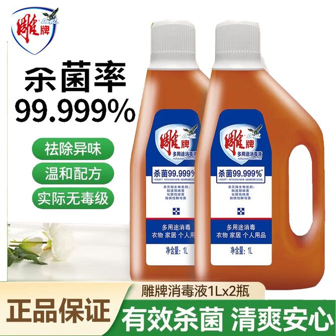 雕牌 多功能香氛衣物消毒液1000ml*2瓶(超值推荐) 除菌率≥99.999%除菌液内衣杀菌液母婴安全配方内衣消毒液衣物机洗手洗室内家居一瓶多用 杀菌99.999% ,含松木提取成分,有效祛除异味,不损伤衣物。 兑换价格 3100 里程 会员卡别 终身白金卡 白金卡 金卡 银卡 普通卡 儿童卡 服务 由 京狮文化生活馆 发货并提供售后 清洁剂容量: 2L 净含量: 2L 购买数量: 件 库存件 配送地址: 立即购买 加入购物车 成功添加到购物车 关闭 购物车共有 种商品 总金额为: 组合销售 产品介绍 产品规格 售后服务 产品咨询 发现好货 超能 西柚祛腥洗洁精1kg*2瓶 家用果蔬清洗剂 1200 里程 滴露/Dettol 滋润倍护洗手液500g*2两瓶装 1900 里程 滴露/Dettol 泡沫抑菌洗手液青柠香型250ml 1300 里程 蓝月亮 卫诺沁香花园香氛洁厕液 500g×6瓶 4100 里程 超能 洗洁精(白桃苏打)1kg*2瓶 1100 里程
