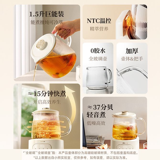组合销售 产品介绍 产品规格 售后服务 产品咨询 发现好货 九阳/Joyoung 养生壶1.5L茶具电茶壶煮茶壶花茶壶玻璃煮茶器煎药壶中药锅药膳电水壶烧水壶 3900 里程 九阳/Joyoung 养生壶迷你玻璃花茶壶煮茶器 12大功能11档温度 电水壶热水壶烧水壶 1.5L DGD1506BQ 3900 里程 美的/Midea 养生壶 1.5L家用多功能小型全自动办公室烧水壶加厚玻璃煮茶热水壶 MK-YS15P201 4200 里程 美的/Midea 养生壶 1.5L家用养生壶全自动玻璃烧水壶24h预约烧水壶12小时防干烧保护智能恒温 MK-YS15P202 3700 里程 美的/Midea 养生壶 1.5L全自动电热水壶 24h预约12小时智能恒温 14大功能11档控温 花茶壶煮茶器MK-Y12Q 3500 里程