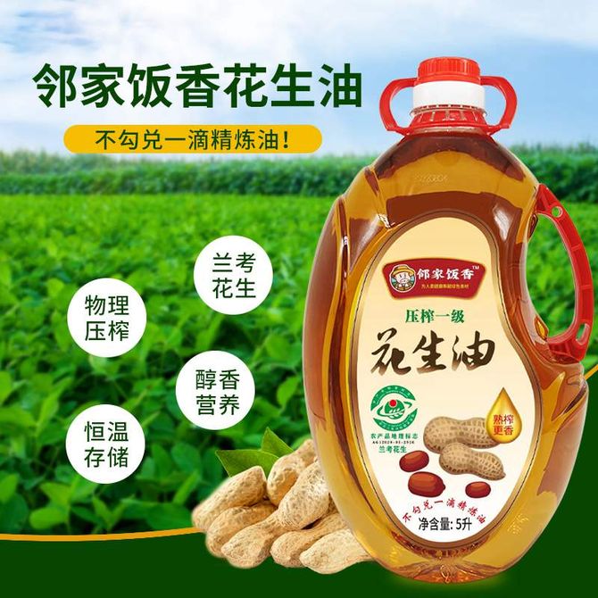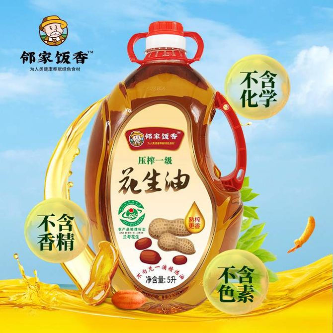邻家饭香 压榨一级花生油5L 国家地理标志农产品 优质兰考花生压榨 家庭烹饪食用油 5L