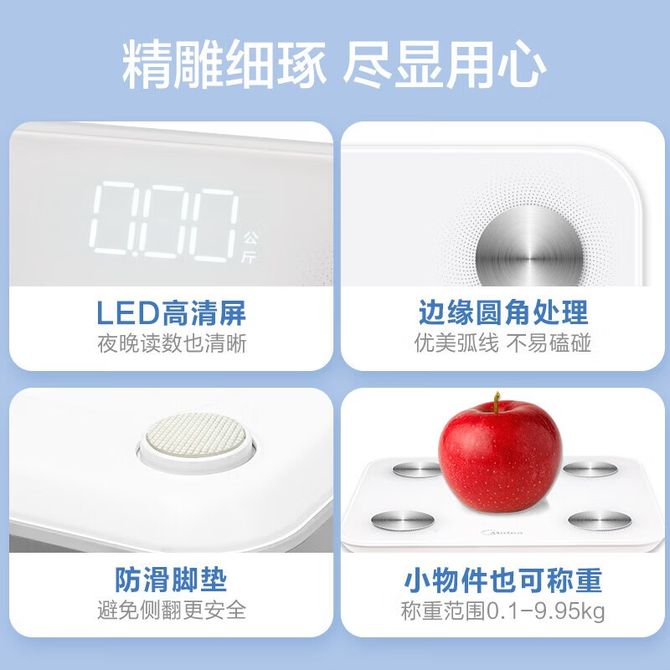 美的/Midea 体脂秤 智能家用精准电子秤 人体健康秤重计体重秤 (电池款) MCF-C2 CD纹电极均匀分布,无线蓝牙轻松智联,150毫安大容量锂电池 兑换价格 4500 里程 会员卡别 终身白金卡 白金卡 金卡 银卡 普通卡 儿童卡 商品已下架 1. 请联系卖家咨询 2. 逛逛观脂电器选择其他商品 组合销售 产品介绍 产品规格 售后服务 产品咨询 发现好货 奥克斯/AUX 体重秤体脂称 3001W1M 充电款 2000 里程 小米体重秤2 家用健康秤电子秤 高精度智能分析隐藏式LED屏幕 4400 里程 小米 智能体重秤S200 米家家用健康秤电子秤 高精度 人物双模式 APP数据测量 智能分析 3900 里程 小米 家用健康秤电子秤高精度 人物双模式 APP数据测量智能体重秤S200白色 3900 里程 小熊/Bear 厨房秤高精度0.05g充电款 家用电子秤 厨房克秤 迷你食物称DZCD01K5绿色 3500 里程