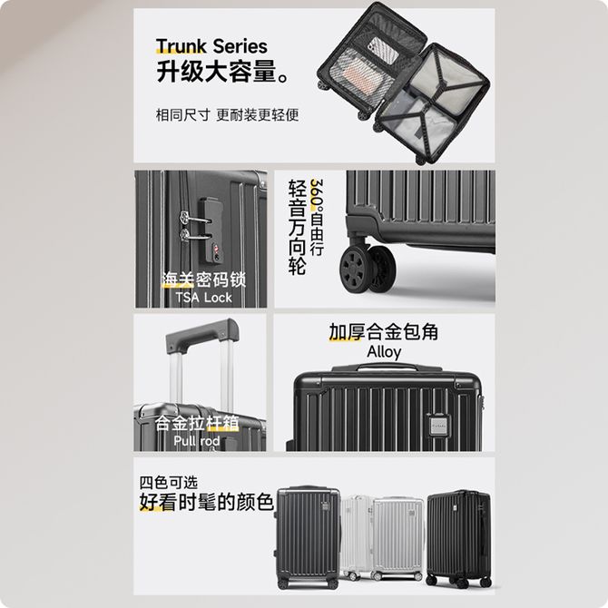 皮尔卡丹/Pierre Cardin 20寸行李箱2025新款女大容量万向轮学生旅行拉杆箱结实耐用旅行箱 【有侧提手】【有侧提手】【顺丰配送】【顺丰配送】 兑换价格 6500 里程 会员卡别 终身白金卡 白金卡 金卡 银卡 普通卡 儿童卡 服务 由 琅华箱包 发货并提供售后 颜色: 白色 黑色 灰色 银色 购买数量: 件 库存件 配送地址: 立即购买 加入购物车 成功添加到购物车 关闭 购物车共有 种商品 总金额为: