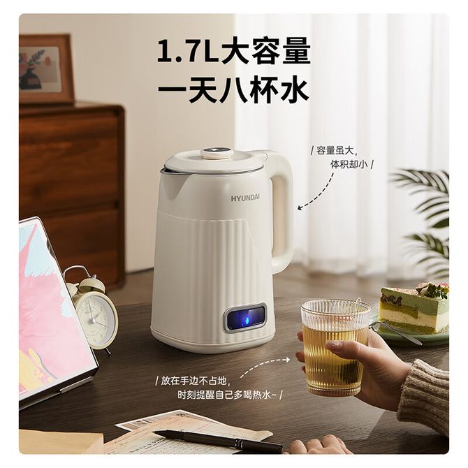 HYUNDAI 烧水壶双层防烫保温恒温电热水壶 1.7L 升级款 家用烧水壶双层防烫保温304不锈钢保温功能大容量恒温电热水壶 1.7L 升级款 兑换价格 8700 里程 会员卡别 终身白金卡 白金卡 金卡 银卡 普通卡 儿童卡 服务 由 纳华优选 发货并提供售后 颜色: 米色 购买数量: 件 库存件 配送地址: 立即购买 加入购物车 成功添加到购物车 关闭 购物车共有 种商品 总金额为: 组合销售 产品介绍 产品规格 售后服务 产品咨询 发现好货 苏泊尔(SUPOR)电水壶 1.7L 不锈钢/YL SW-17S13A 5700 里程 志高/Chigo 电水壶烧水壶1.8L大容量电热水壶双层防烫自动断电家用烧水开水壶不锈钢 电水壶 DC-A18F 1900 里程 美的/Midea 电热水壶家用大容量烧水壶热水壶双层防烫电水壶304不锈钢内胆自动断电分离式拔盖 MK-SH15X1-102 3000 里程 小熊/Bear 电水壶家用烧水壶 不锈钢自动断电恒温热水壶保温一体电热水壶1.5L容量 3500 里程 小熊/Bear 烧水壶电水壶热水壶电热水壶开水壶304不锈钢内胆双层防烫1.5L大容量ZDH-Q15U8 3000 里程