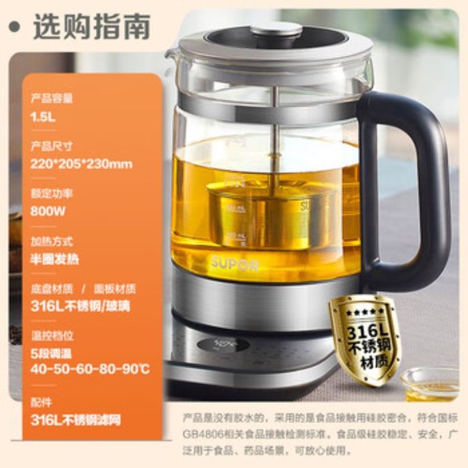 苏泊尔(SUPOR) 养生壶SW-15C01 煮茶器1.5L花茶壶玻璃 316L不锈钢电水壶烧水壶电热水壶 保温煮茶壶黑茶 煮茶器1.5L花茶壶玻璃 316L不锈钢电水壶烧水壶电热水壶 保温煮茶壶黑茶 兑换价格 17400 里程 会员卡别 终身白金卡 白金卡 金卡 银卡 普通卡 儿童卡 服务 由 纳华优选 发货并提供售后 颜色: 银色 购买数量: 件 库存件 配送地址: 立即购买 加入购物车 成功添加到购物车 关闭 购物车共有 种商品 总金额为: