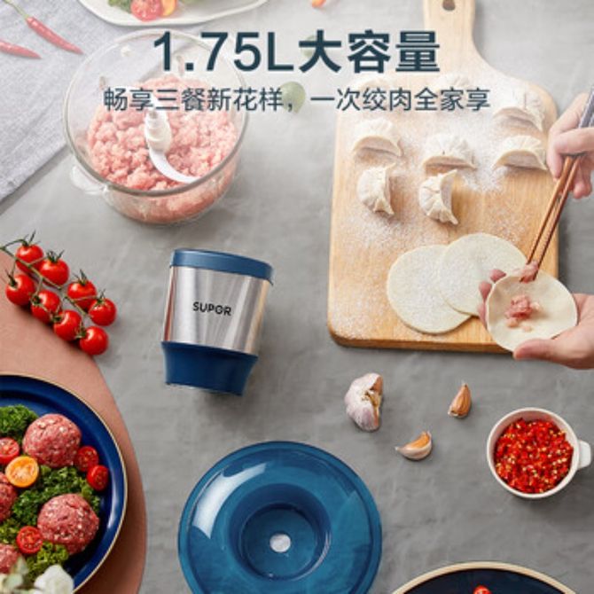 组合销售 产品介绍 产品规格 售后服务 产品咨询 发现好货 卡屋KAWU 绞肉机2.3L家用电动碎肉机PY-37930一副刀片 3300 里程 小熊/Bear 绞肉机家用绞馅机碎肉机电动多功能料理搅拌打肉饺子肉馅蒜蓉机切碎机QSJ-D03W5 4000 里程 苏泊尔(SUPOR) 绞肉机家用多功能电动碎肉机料理机 辅食肉馅机 蔬菜机 大容量 1.75L JR20-B175 3000 里程 小熊/Bear 绞肉机家用多功能料理搅拌机碎肉机蒜蓉机QSJ-E03C8 约2L 3000 里程 卡屋kawu 蒜蓉器多功能电动无线蒜泥机 1700 里程