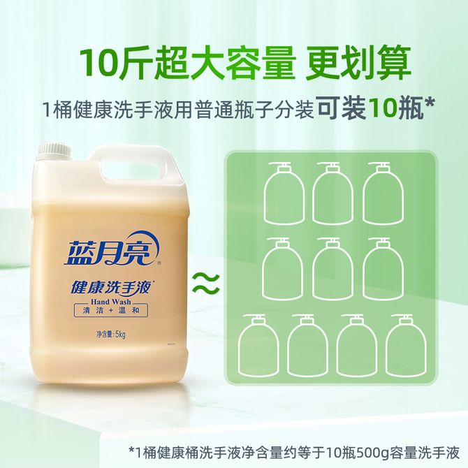 蓝月亮 洗手液大桶补充装5kg+洗手液一件 有效去油去腥 轻松清洁双手 蓝月亮品牌方仓库直接发货,正品无忧,部分商品包装更新,新旧包装随机发货,还请多多见谅。 兑换价格 4300 里程 会员卡别 终身白金卡 白金卡 金卡 银卡 普通卡 儿童卡 服务 由 银弓家居日用专营店 发货并提供售后 清洁剂容量: 其他容量 净含量: 其他容量 购买数量: 件 库存件 配送地址: 立即购买 加入购物车 成功添加到购物车 关闭 购物车共有 种商品 总金额为: 组合销售 产品介绍 产品规格 售后服务 产品咨询 发现好货 舒肤佳抑菌洗手液 纯白清香420g+柠檬420g(新老包装随机发货) 3400 里程 滴露/Dettol 泡沫抑菌洗手液青柠香型250ml 1300 里程 蓝月亮 卫诺沁香花园香氛洁厕液 500g×6瓶 4100 里程 滴露/Dettol 消毒液消毒水1.8L衣物除菌液家居宠物环境地板杀菌除螨 非84酒精 3110246 4100 里程 立白 生姜洗洁精 2.5kg 除腥祛味 1200 里程