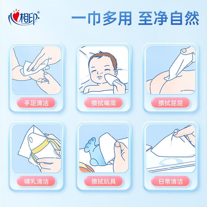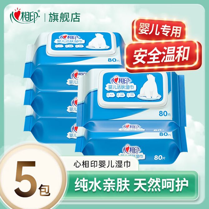 心相印(Mind Act Upon Mind) 婴儿湿巾纸宝宝儿童婴幼儿大包装手口屁专用湿纸巾 80片*5包