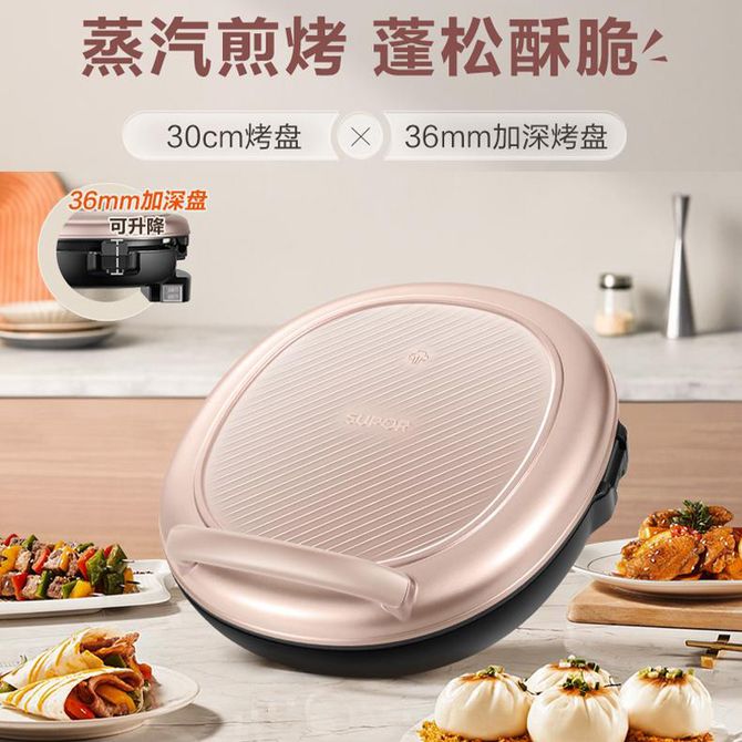 苏泊尔(SUPOR) 电饼铛煎烤机双面加热煎饼铛家用早餐机三明治机烙饼机加大加深烤盘 30cm大烤盘 36mm加深烤盘 蒸汽酥嫩煎烤 1700W大火力 15mm升降可调 兑换价格 7800 里程 会员卡别 终身白金卡 白金卡 金卡 银卡 普通卡 儿童卡 服务 由 广西自贸区京通桂达科技发展有限公司 发货并提供售后 颜色: 其他 购买数量: 件 库存件 配送地址: 立即购买 加入购物车 成功添加到购物车 关闭 购物车共有 种商品 总金额为: 组合销售 产品介绍 产品规格 售后服务 产品咨询 发现好货 苏泊尔(SUPOR)电饼铛家用 双面加热煎饼铛煎烤机三明治机烙饼锅早餐机25mm加深烤盘火力可调JD31A847A 6500 里程 苏泊尔(SUPOR) 电饼铛 自动煎烤机 电火锅多功能 加大加深60mm双加热烙饼 锅面煎饼电饼档 两档火力 JT30A818 5700 里程 苏泊尔(SUPOR)电饼铛家用双面加热电饼档煎烤机烙饼机双面悬浮加热早餐机三明治机JJ30A648-Q 5700 里程 美的(Midea)电饼铛家用智能双面加热煎烤机烙饼机蛋饼机薄饼机煎饼烙饼锅JHN30F 4800 里程 奥克斯 电饼铛家庭用新款双面加热加大尺寸加深烤盘烙饼专用锅自动控温断电煎饼锅早餐机 5200 里程