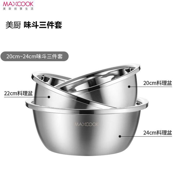 美厨(MAXCOOK) 不锈钢盆三件套 加大加厚调料盆和面盆洗菜盆味斗套装 不锈钢盆三件套:20cm+22cm+24cm版本随机发货 兑换价格 2100 里程 会员卡别 终身白金卡 白金卡 金卡 银卡 普通卡 儿童卡 服务 由 广西自贸区贝佳网络科技有限公司 发货并提供售后 颜色: 其他 购买数量: 件 库存件 配送地址: 立即购买 加入购物车 成功添加到购物车 关闭 购物车共有 种商品 总金额为: