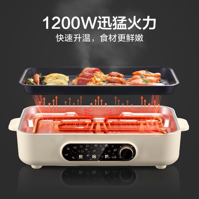 苏泊尔(SUPOR) 多功能料理锅 家用电烤炉多功能锅烧烤烤串烤肉一体不沾烤串机煎烤机可拆3-5人用GJ3723P805 烤盘弧形设计不堆油,可拆易清洗; 分区料理,左烤右煎; 一盘多用 煎/烤/烙没难度;烤盘加深设计,容纳更多食物; 兑换价格 7400 里程 会员卡别 终身白金卡 白金卡 金卡 银卡 普通卡 儿童卡 服务 由 优米酷家电生活馆 发货并提供售后 颜色: 其他 购买数量: 件 库存件 配送地址: 立即购买 加入购物车 成功添加到购物车 关闭 购物车共有 种商品 总金额为: