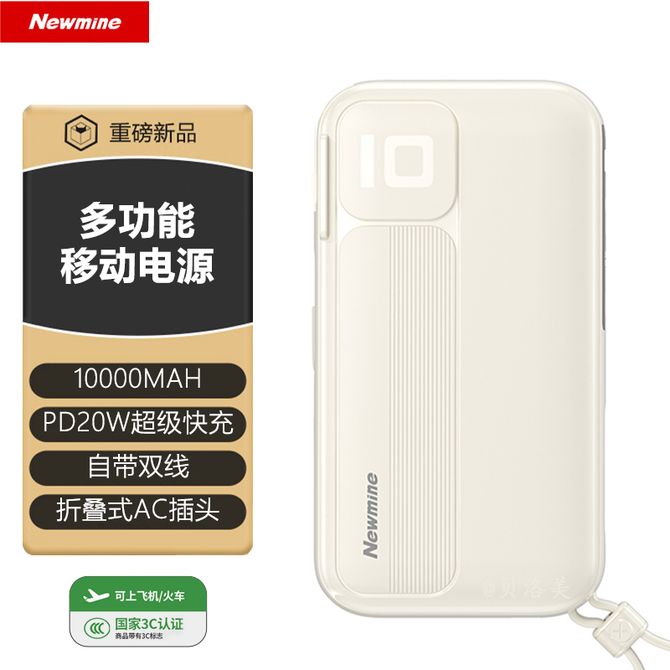 纽曼(Newmine) 【国家3C认证】10000mAh多功能充电宝PD20W超级快充自带线插头二合一小巧便携移动电源 白色 3C认证 可上飞机 机身有3C标识 支持iPhone8-14全系PD快充 兑换价格 5200 里程 会员卡别 终身白金卡 白金卡 金卡 银卡 普通卡 儿童卡 服务 由 贝洛美智能科技精品馆 发货并提供售后 电池容量: 8001mAh-10000mAh 颜色: 白色 购买数量: 件 库存件 配送地址: 立即购买 加入购物车 成功添加到购物车 关闭 购物车共有 种商品 总金额为: 组合销售 产品介绍 产品规格 售后服务 产品咨询 发现好货 ZNNCO 充电宝20000毫安时超薄小巧迷你自带线大容量快充移动电源便携苹果华为小米2万mAh手机 4200 里程 睿量/Remax 磁吸无线充电宝 Magsafe快充 5000mAh超薄小巧便携移动电源 手机背夹迷你移动电源 适用于苹果华为小米手机 RPP-107 4600 里程 雷摄 T68S【3C认证可上飞机】充电宝10000毫安 移动电源 22.5W快充丨1万毫安丨多口输出 1700 里程 纽曼(Newmine) 自带四线充电宝 3C认证 LED智能数显10000毫安移动电源 AL03 经典黑 3000 里程 雷摄 【3C认证】LS-YDZJ01 10000毫安 四线多功能移动电源 黑色 2000 里程
