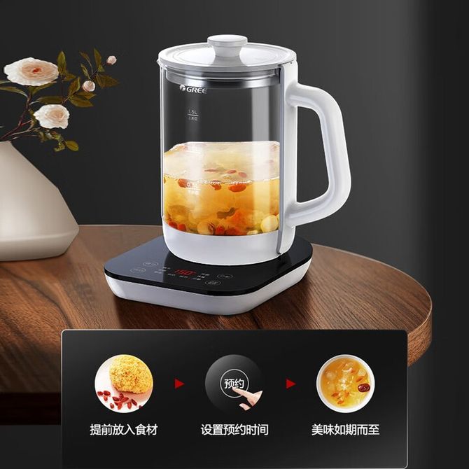 格力/Gree 养生壶1.5L 热水壶 煮茶器 煮茶壶 电水壶恒温电热水壶保温花茶壶 GKY-1501Gb 8大功能菜单 轻松烹制花样饮品 兑换价格 17400 里程 会员卡别 终身白金卡 白金卡 金卡 银卡 普通卡 儿童卡 服务 由 弘济家电 发货并提供售后 颜色: 白色 购买数量: 件 库存件 配送地址: 立即购买 加入购物车 成功添加到购物车 关闭 购物车共有 种商品 总金额为: 组合销售 产品介绍 产品规格 售后服务 产品咨询 发现好货 九阳/Joyoung 养生壶1.5L茶具电茶壶煮茶壶花茶壶玻璃煮茶器煎药壶中药锅药膳电水壶烧水壶 3900 里程 九阳/Joyoung 养生壶迷你玻璃花茶壶煮茶器 12大功能11档温度 电水壶热水壶烧水壶 1.5L DGD1506BQ 3900 里程 美的/Midea 养生壶 1.5L家用多功能小型全自动办公室烧水壶加厚玻璃煮茶热水壶 MK-YS15P201 4200 里程 美的/Midea 养生壶 1.5L家用养生壶全自动玻璃烧水壶24h预约烧水壶12小时防干烧保护智能恒温 MK-YS15P202 3700 里程 美的/Midea 养生壶 1.5L全自动电热水壶 24h预约12小时智能恒温 14大功能11档控温 花茶壶煮茶器MK-Y12Q 3500 里程